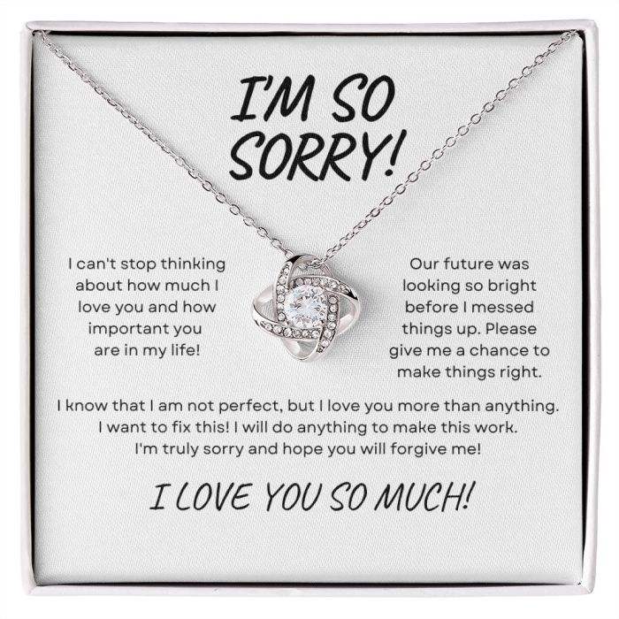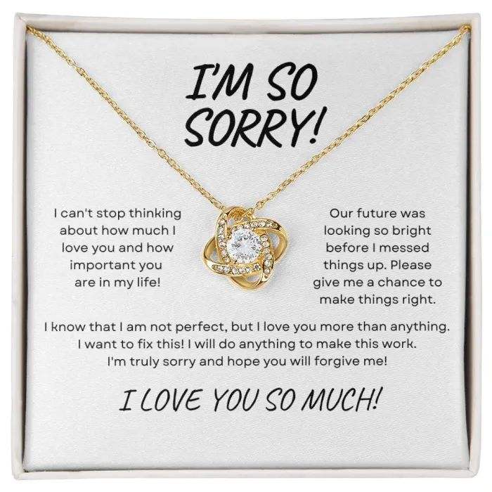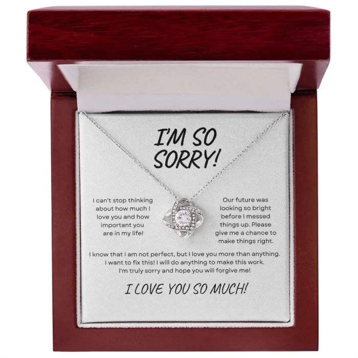 Collier Pendentif Nœud d'Amour en Argent et Cuivre avec Carte Texte Personnalisée - Cadeau de Pardon et de Réconciliation pour Partenaire