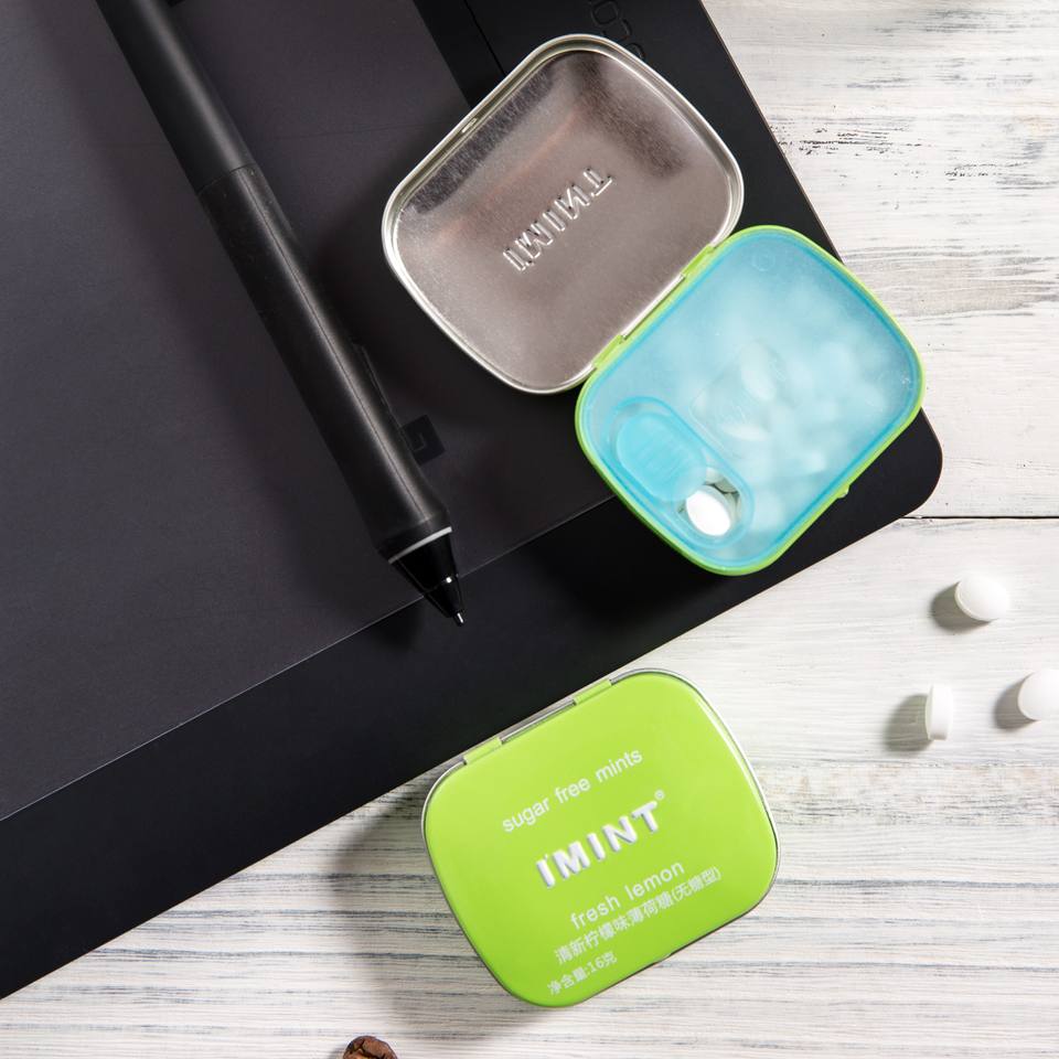 Bonbons à la menthe citronnée pour une haleine fraîche, marque I'MINT, boîte en métal de 16g, bonbons pressés au sucre