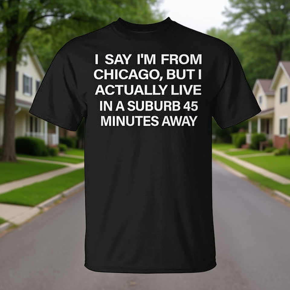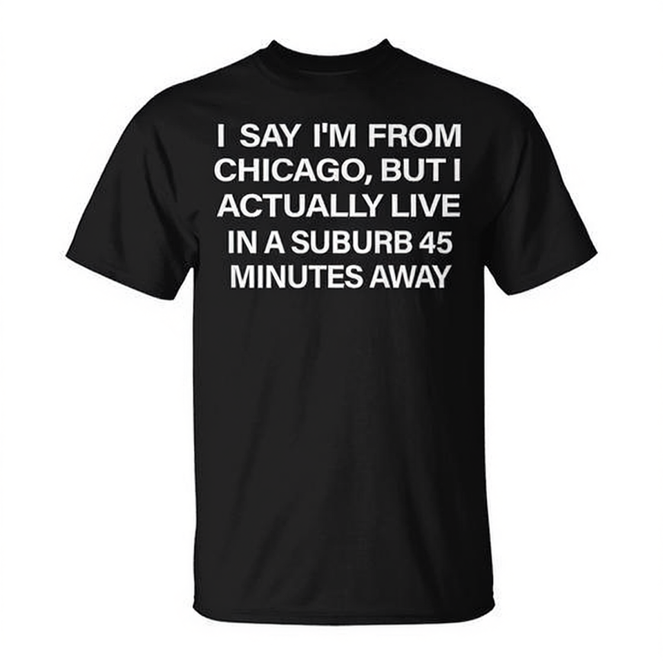 Je dis que je suis de Chicago, mais en fait, j'habite dans une banlieue à 45 minutes de là. T-shirt