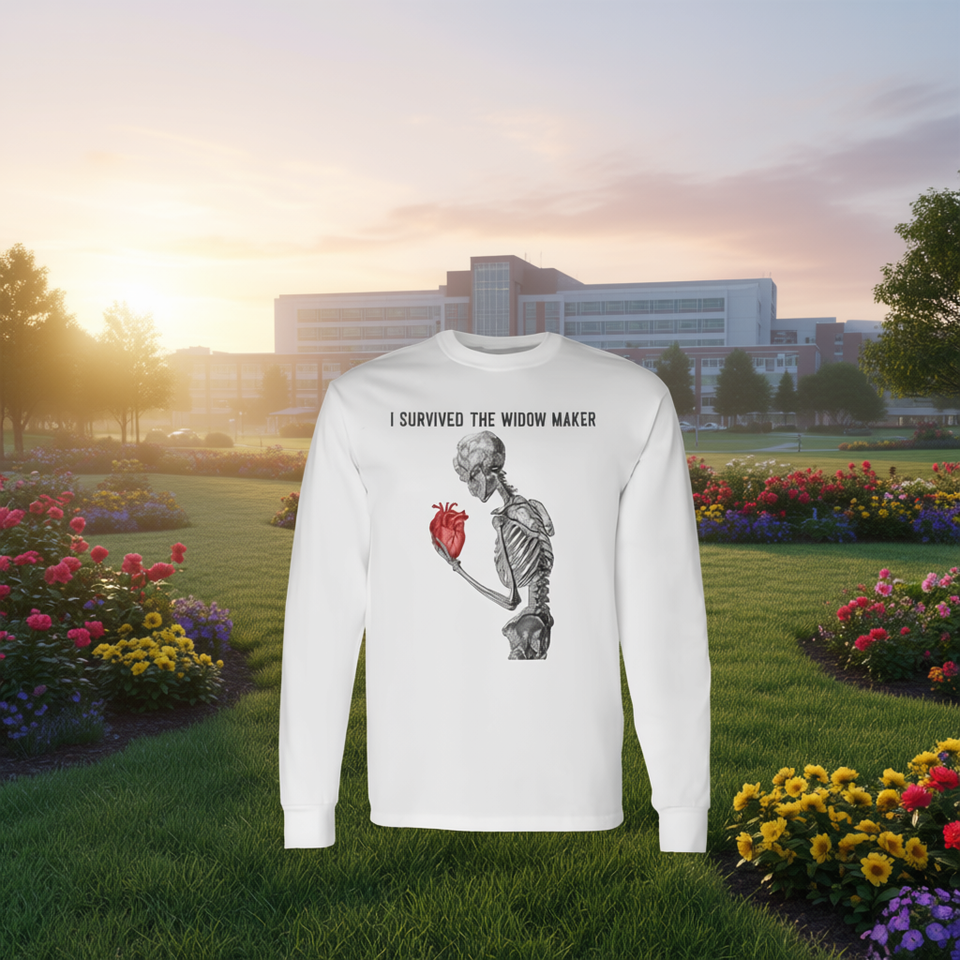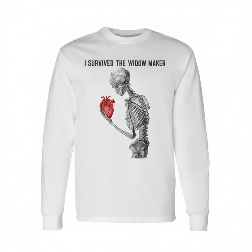 T-shirt à manches longues « I Survived The Widow Maker Skeleton » avec motif « Heart Attack Survivor »