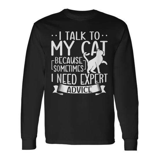 Je parle à mon chat parce que j'ai besoin d'avis d'experts T-shirt à manches longues Cadeau pour les amoureux des chats