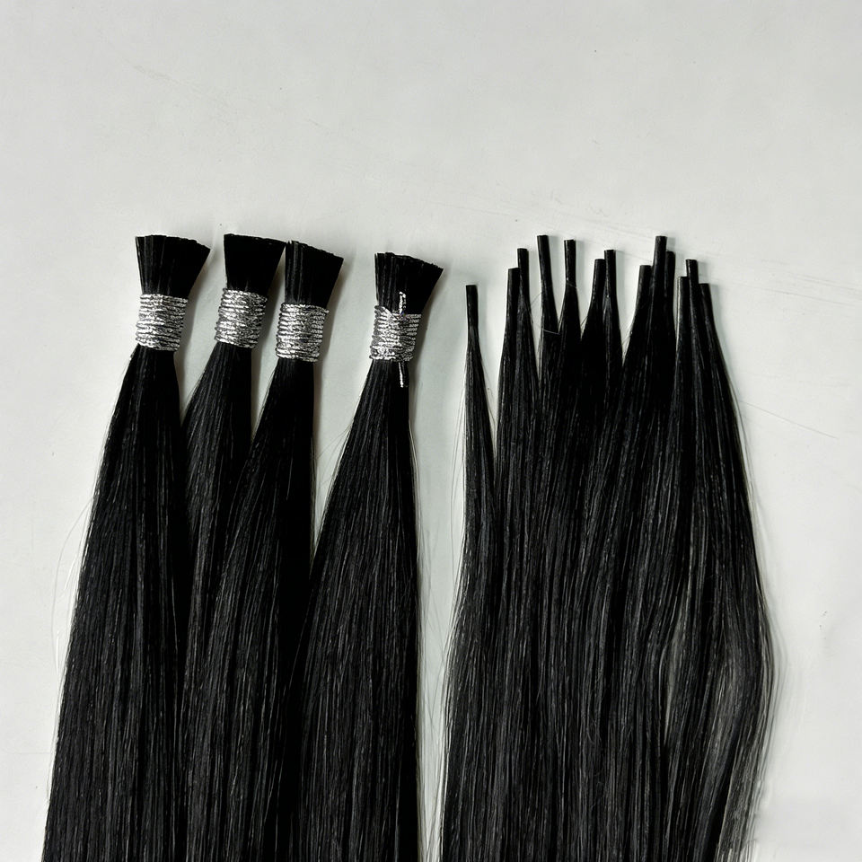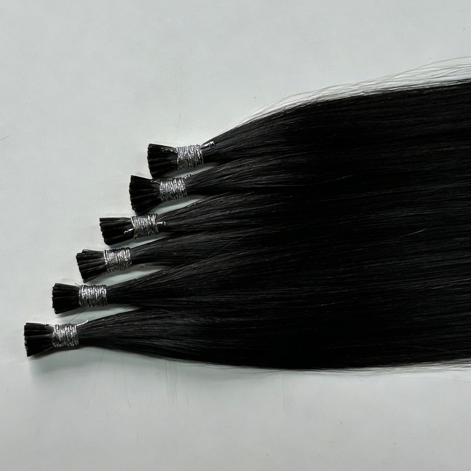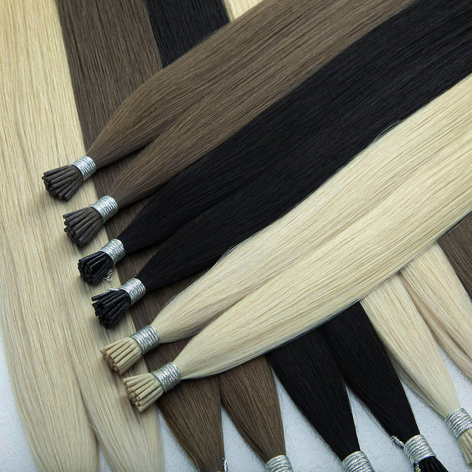 Extensions de cheveux brésiliens Remy I-Tips, double épaisseur, kératine, pointe plate, trame simple, vierges, pour fusion en gros
