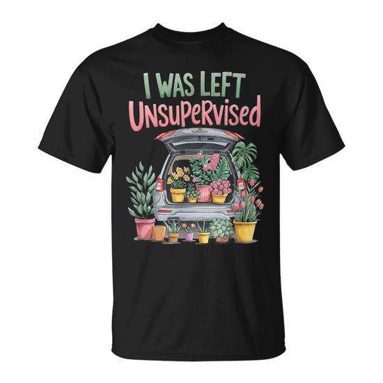 T-shirt « J'ai été laissé seul(e) sans surveillance au jardinage » pour mamans et papas