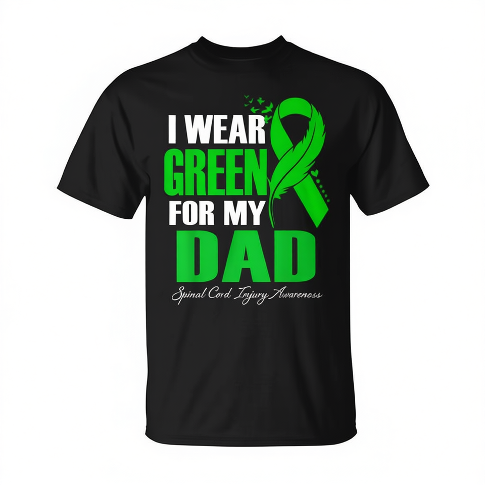 I Wear Green For My Dad Spinal Cord Injury Awareness T-Shirt Adult Unisex Short Sleeve Crew Neck Silk Screen Printing