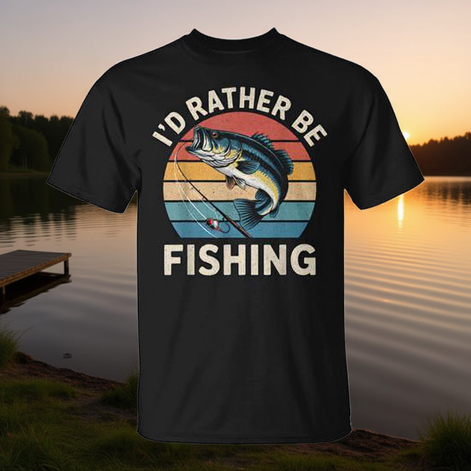 I'd Rather Be Fishing T-Shirt Short Sleeve Crew Neck Unisex Adult Casual Wear