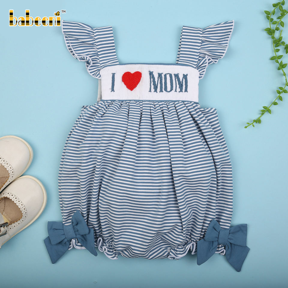 J'adore les barboteuses à nœuds smockés à la main pour petites filles - 100% coton, hiver, ODM OEM BB3048