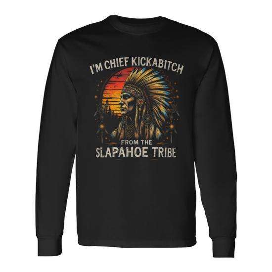 T-shirt à manches longues pour homme, motif tribal amérindien, I'm Chief Kickabitch From The Slapahoe Tribe