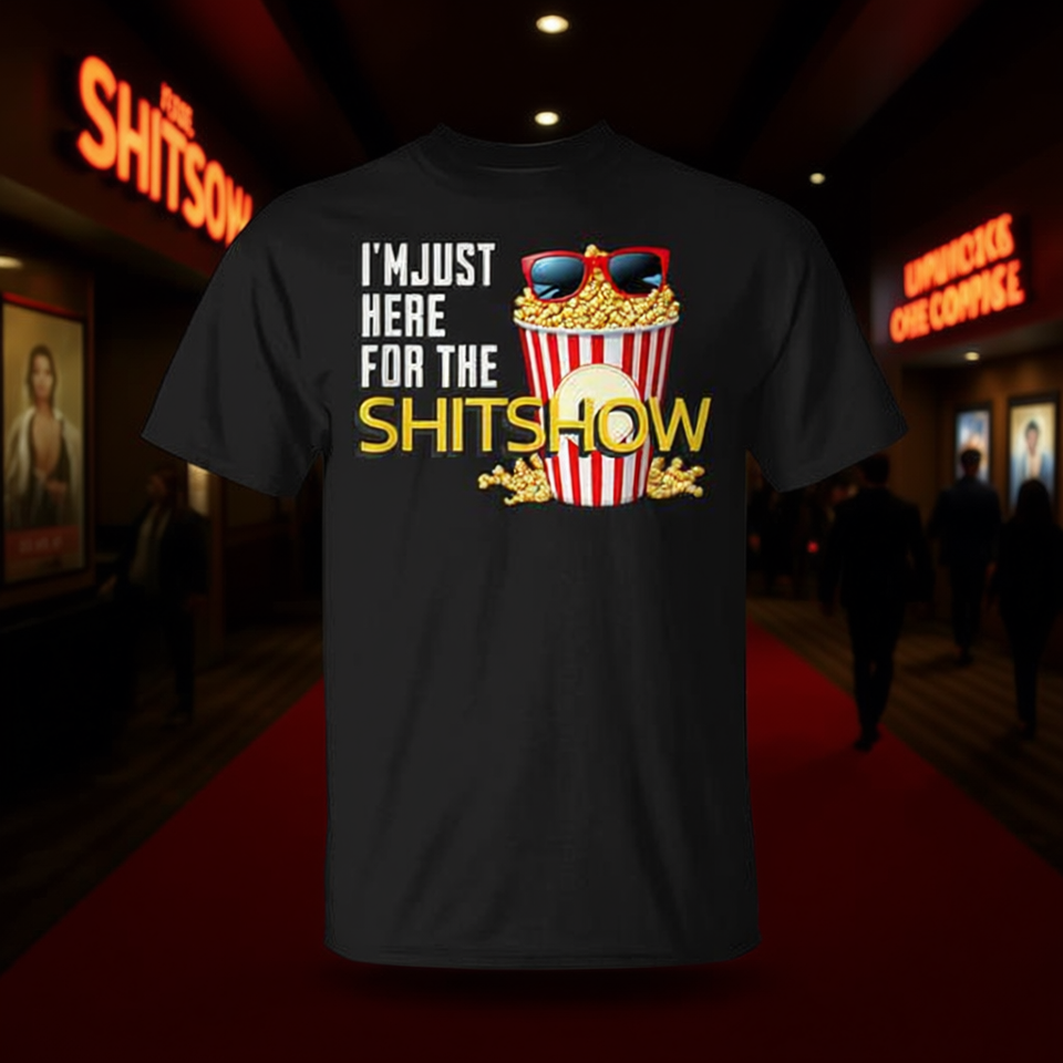 T-shirt I'm Just Here For The Shitshow, design Popcorn, noir, unisexe pour adultes