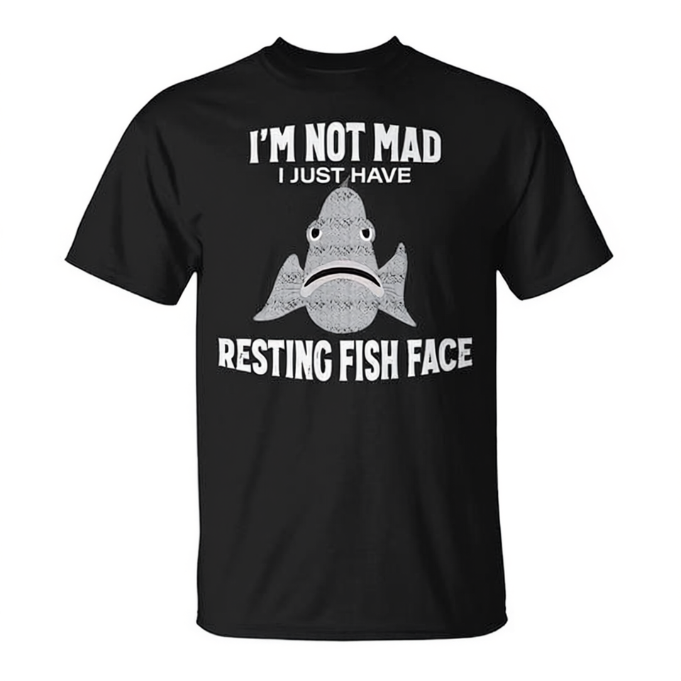T-shirt de pêche unisexe pour adulte, col rond, manches courtes, imprimé sérigraphié « I'm Not Mad I Just Have Resting Fish Face »