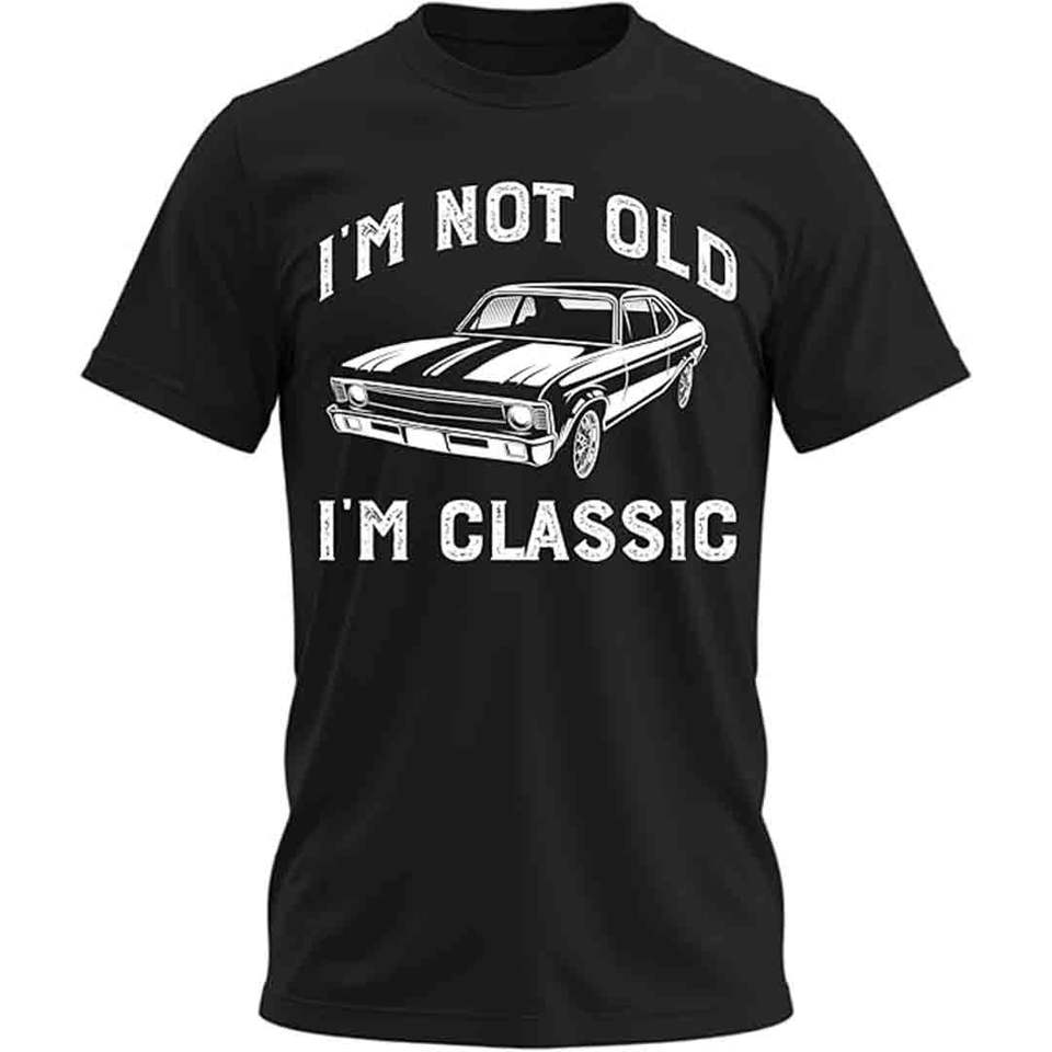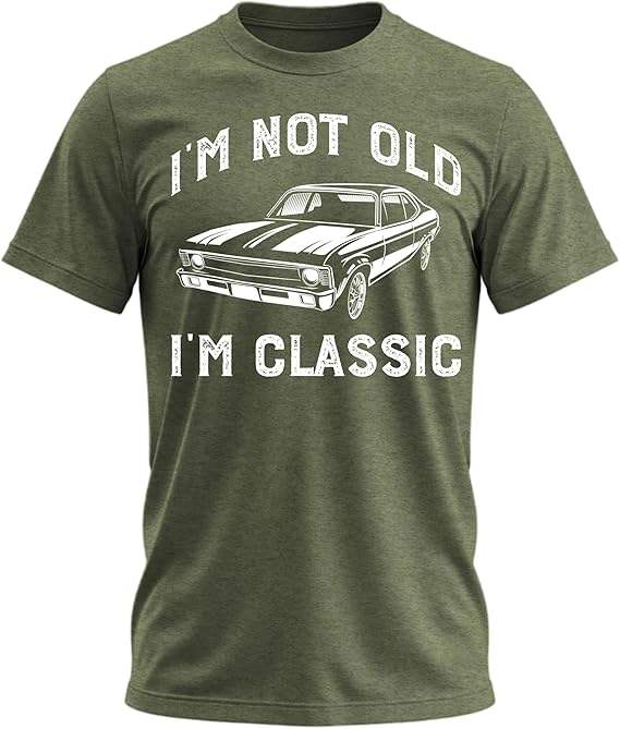 T-shirt « Je ne suis pas vieux, je suis classique » avec motif de voiture amusant, t-shirts vintage rétro pour hommes