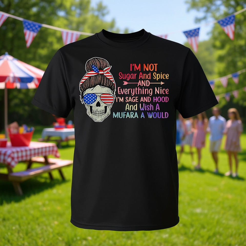 T-shirt personnalisable promotionnel « I'm Not Sugar and Spice I'm Sage Hood Sugar Skull 4th July »
