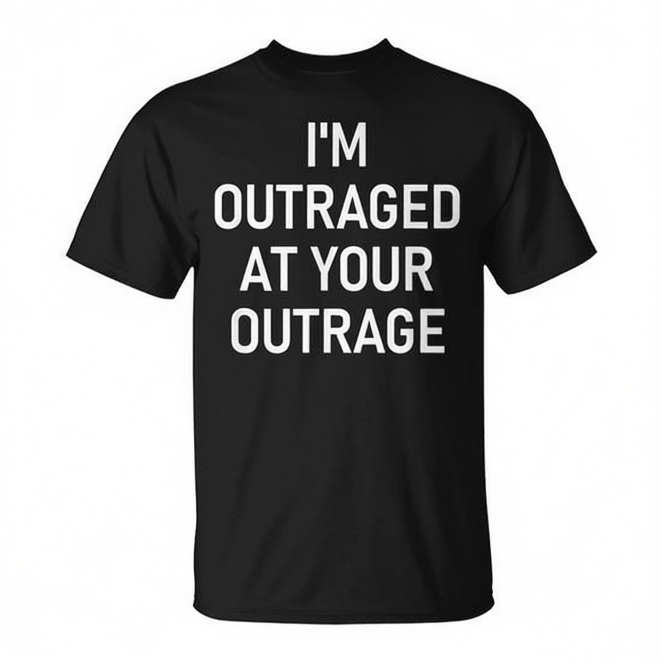 T-shirt unisexe noir à col rond et manches courtes « I'm Outraged At Your Outrage » pour adulte
