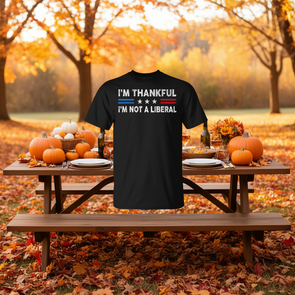 Je suis reconnaissant que je ne suis pas un libéral, t-shirt avec drapeau américain pour Thanksgiving