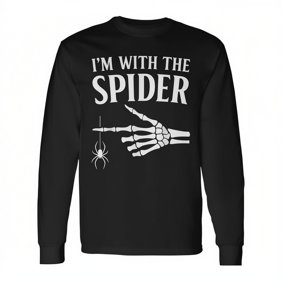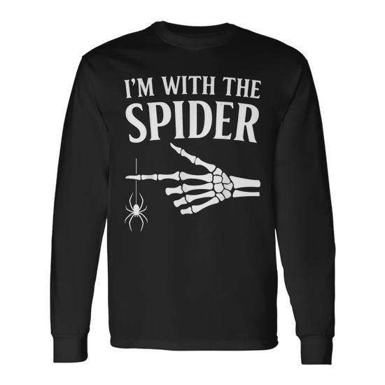 T-shirt personnalisé en coton à manches longues pour adulte avec impression sérigraphiée « I'm with the Spider Halloween Skeleton Hand »