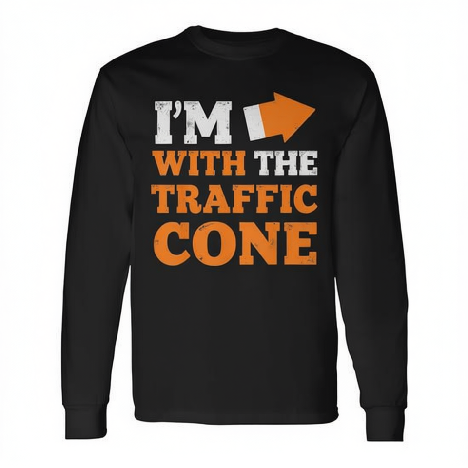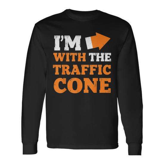 T-shirt à manches longues pour couple Halloween « I'm With The Traffic Cone »
