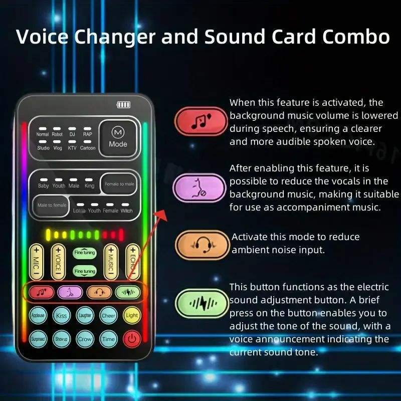 Kit Changeur de Voix I9 Mini, Table de Son Portable pour Diffusion en Direct, Déguiseur Vocal avec 8 Sons Différents