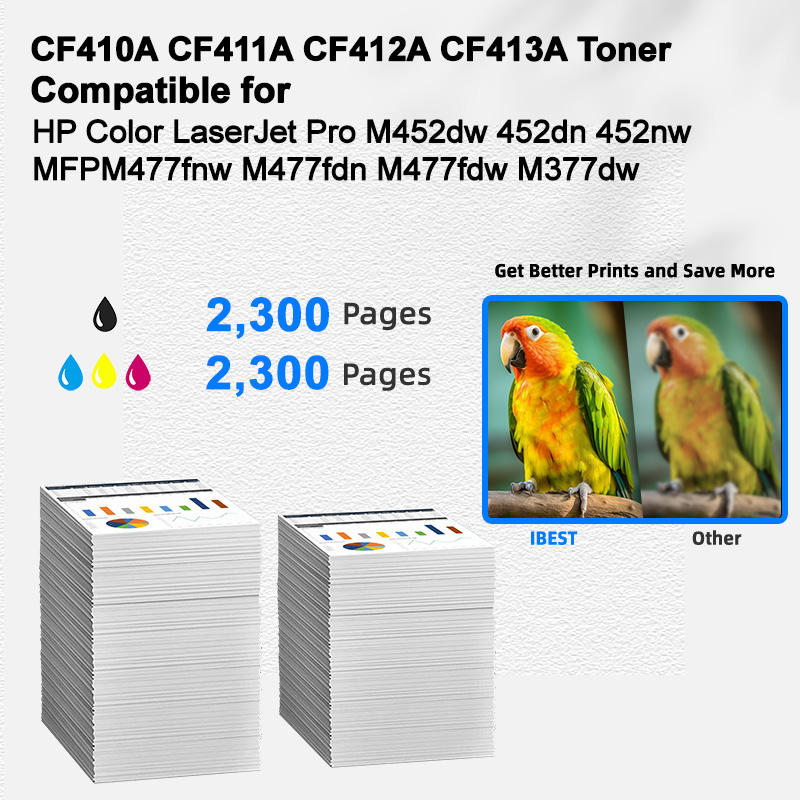 IBEST Compatible HP 410A CF410A CF411A CF412A CF413A Cartouche de Toner Compatible pour HP Color LaserJet Pro M452dw 452dn 452nw