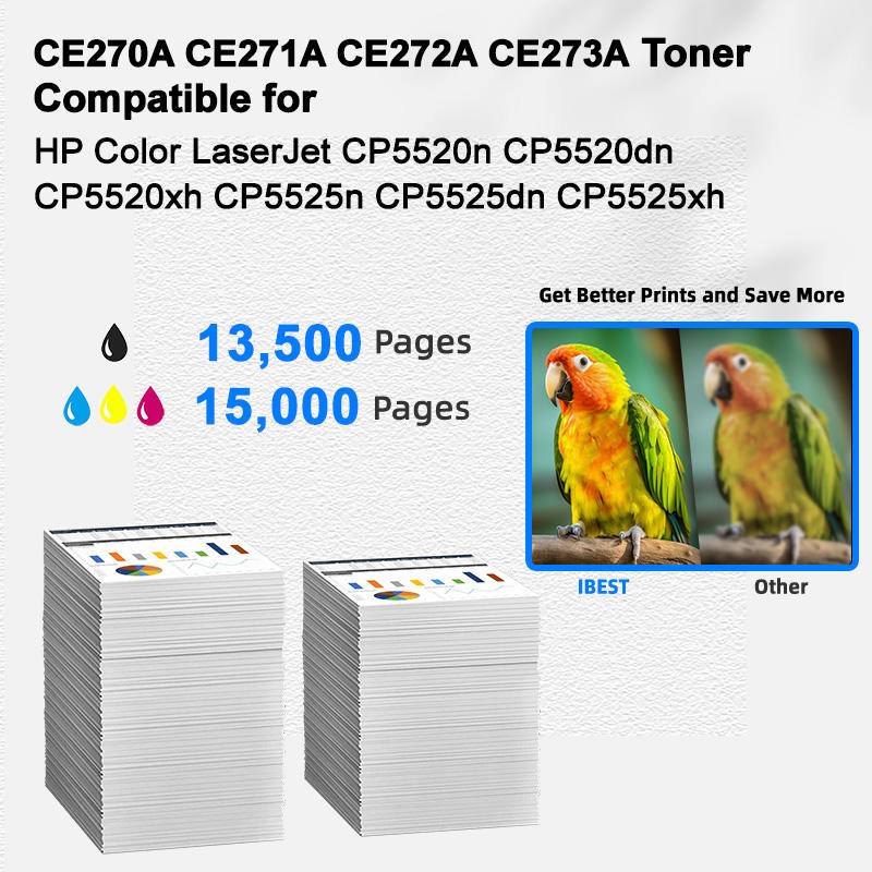 IBEST Compatible HP 650A CE270A CE271A CE272A CE273A Cartouche de toner Compatible pour HP Color LaserJet CP5520n CP5520dn CP5520xh
