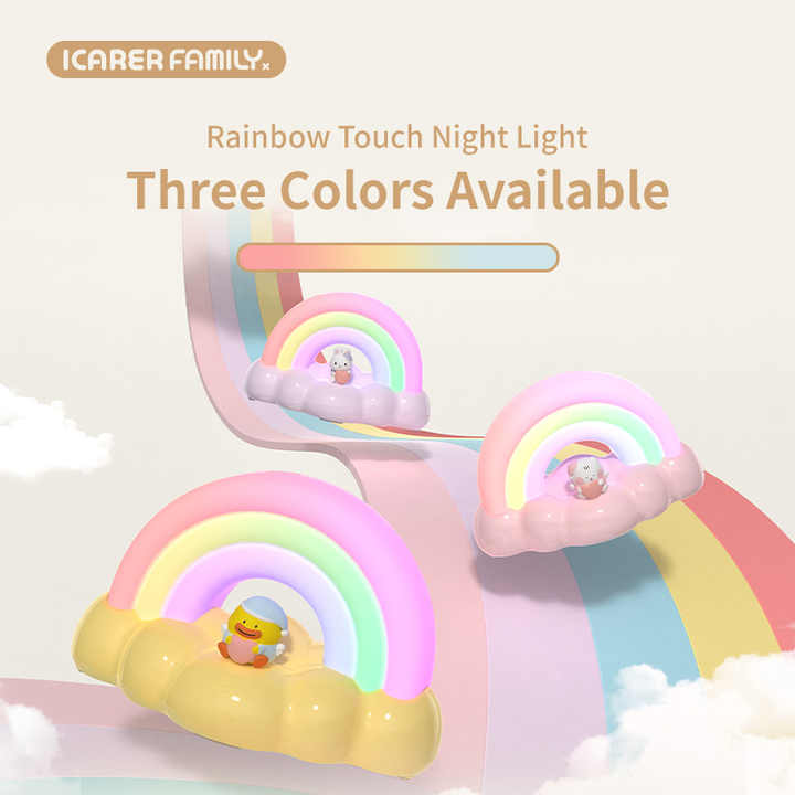 Veilleuse rechargeable ICARER, veilleuse arc-en-ciel en ABS, veilleuse LED, animal mignon, lampe pour enfants, bébé, chambre d'enfant, lumière douce au toucher, lampe de chevet pour dormir