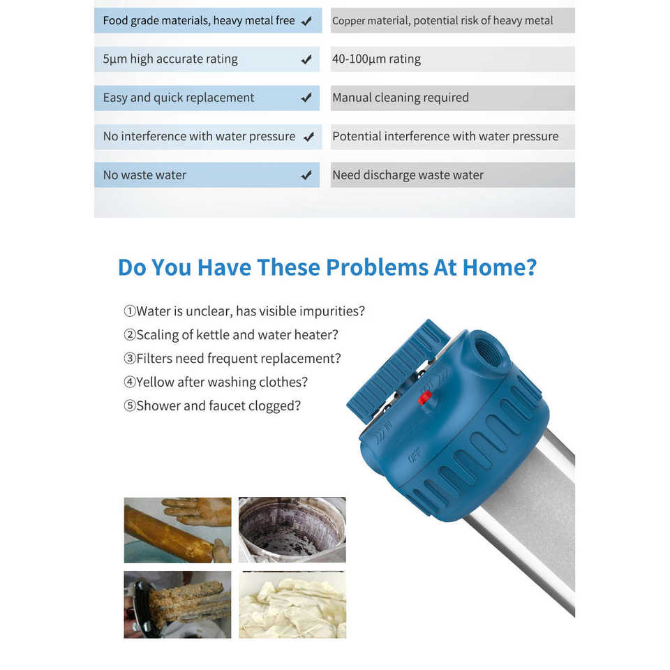 ICEGALAX Boîtier de filtre à eau transparent italien en PET de 10 pouces, filtres à eau potable manuels pour la maison, l'extérieur, les camping-cars et les voitures
