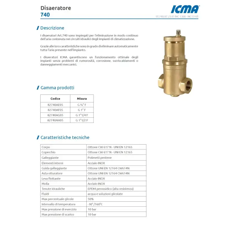 Désaérateur ICMA 1 pouce à haut débit pour systèmes CVC (chauffage et climatisation)