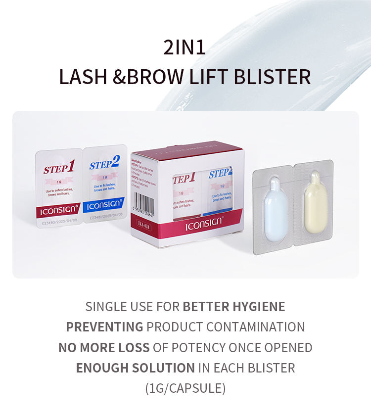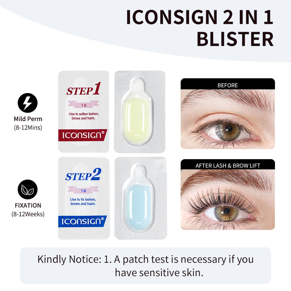ICONSIGN Solution de rehaussement des cils de qualité salon, étape 1, étape 2, lotion permanente pour cils, kit de sachets, capsule jetable pour le rehaussement des cils et des sourcils