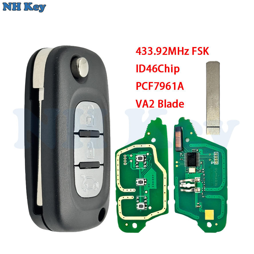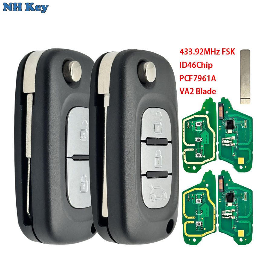 Clé de voiture à distance pliable VA2 433 MHz ID46 PCF7961 pour Renault Clio III Master Kangoo Modus Twingo Megane Fluence SM3 Mercedes