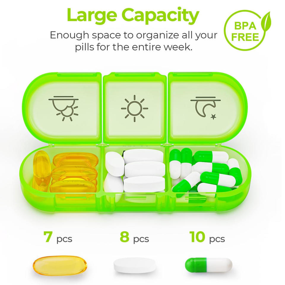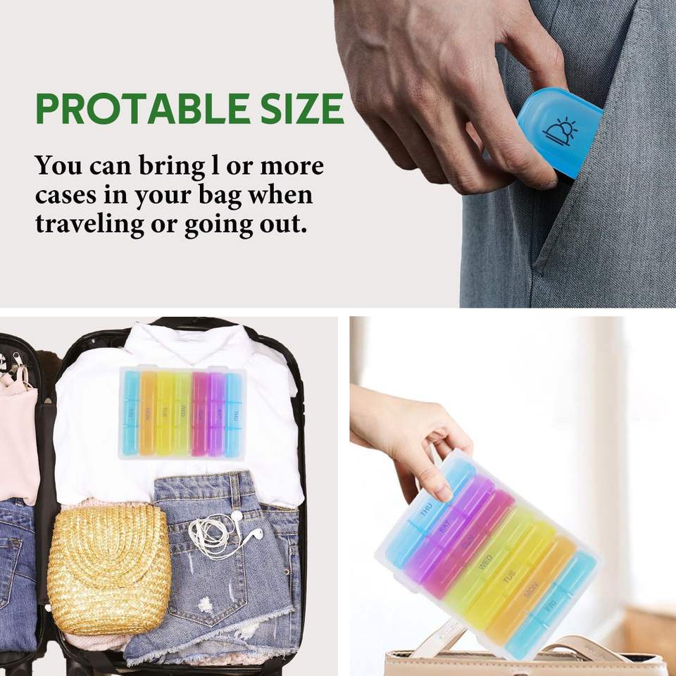 IDEA GIFT Boîte à pilules personnalisée, organiseur de pilules hebdomadaire, mini boîte à pilules portable pour 7 jours, conteneur de médicaments pour les voyages quotidiens