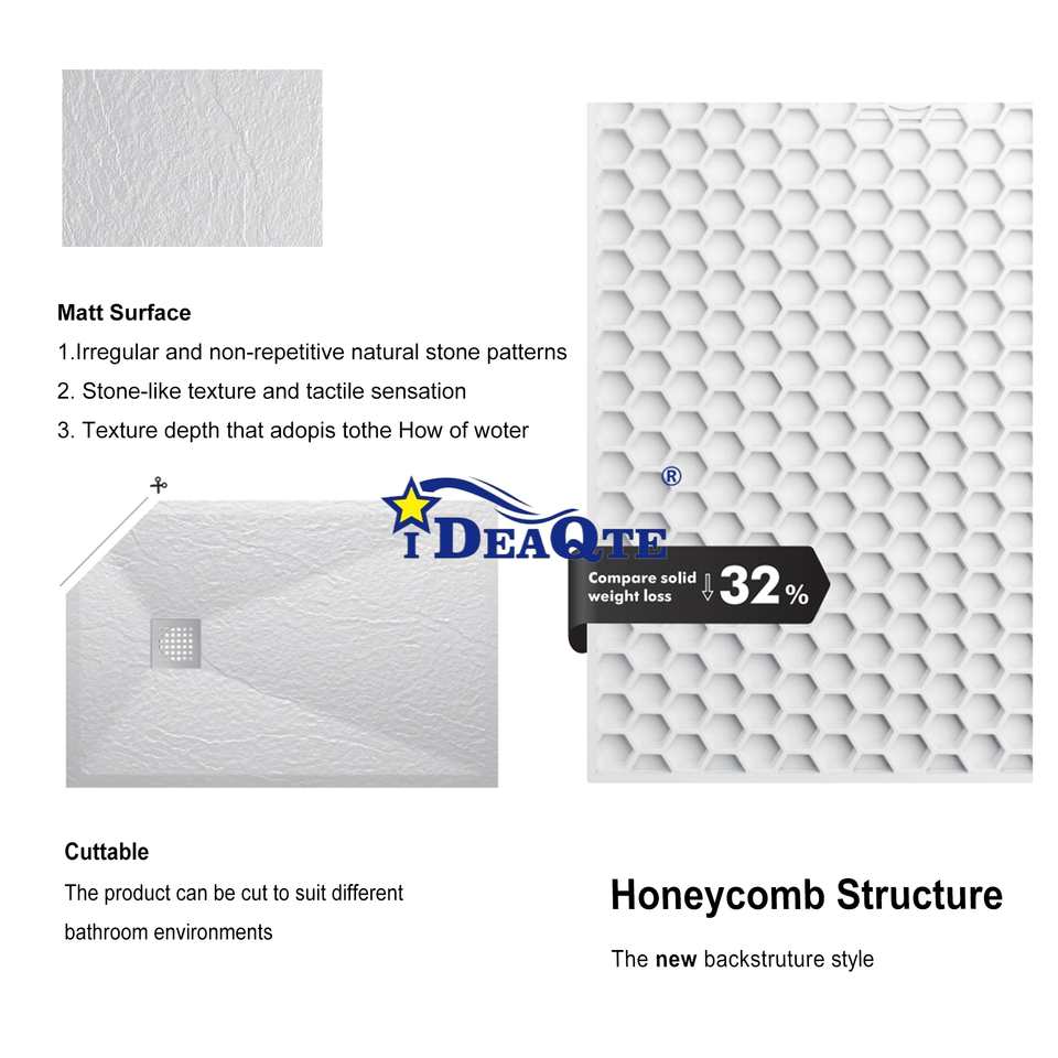 IDEAQTE Cuttable Pierre Artificielle Surface Solide Plateau De Douche Cabine De Douche Avec Base De Plateau De Douche