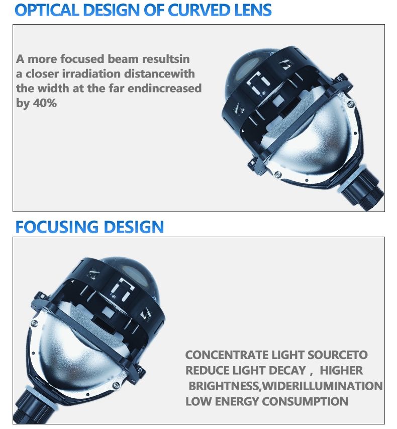 IDISON T15W Devil Eyes Phare de voiture à double source ultra-lumineux 3 pouces 60W 70W 6500K, faisceau unique haute et basse, lentille de projecteur Bi-LED