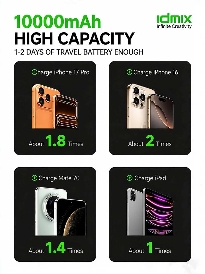 Nom du produit:IDMIX Q10L Batterie Externe Magnétique Sans Fil