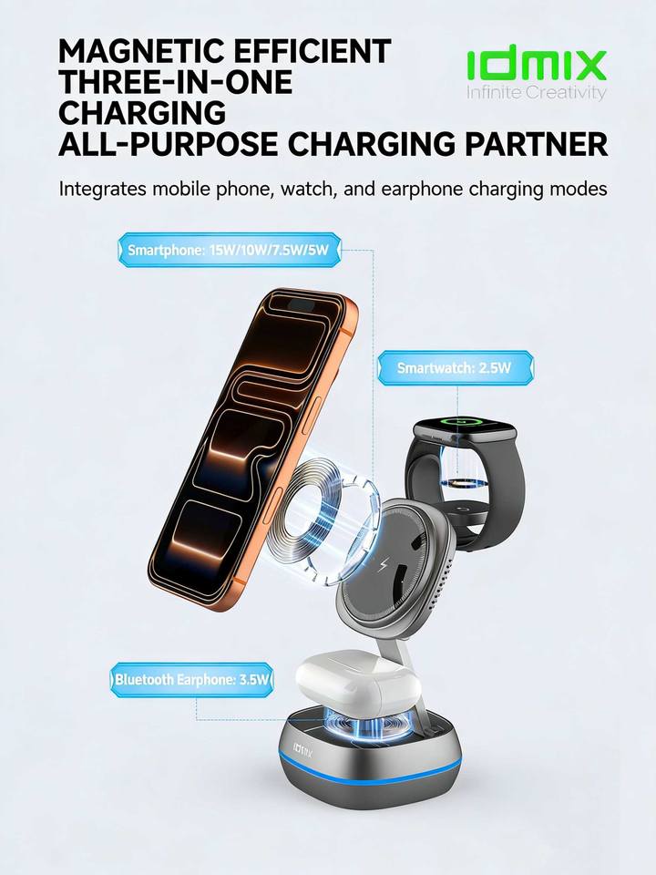 Nom du produit:Chargeur sans fil magnétique 3 en 1 IDMIX