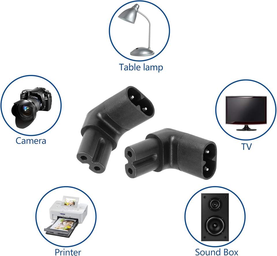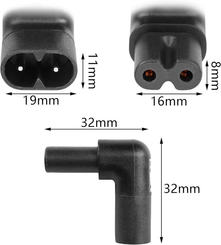 Adaptateur secteur à angle droit IEC320 C7 à C8, adaptateur secteur IEC 320 C7-C8 90 degrés, convertisseur secteur à angle haut-bas mâle vers femelle Figure 8