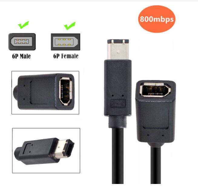 Câble IEEE 1394 1394 6 broches femelle vers 1394b 6 broches mâle Firewire 400 vers 400 Câble 20 cm