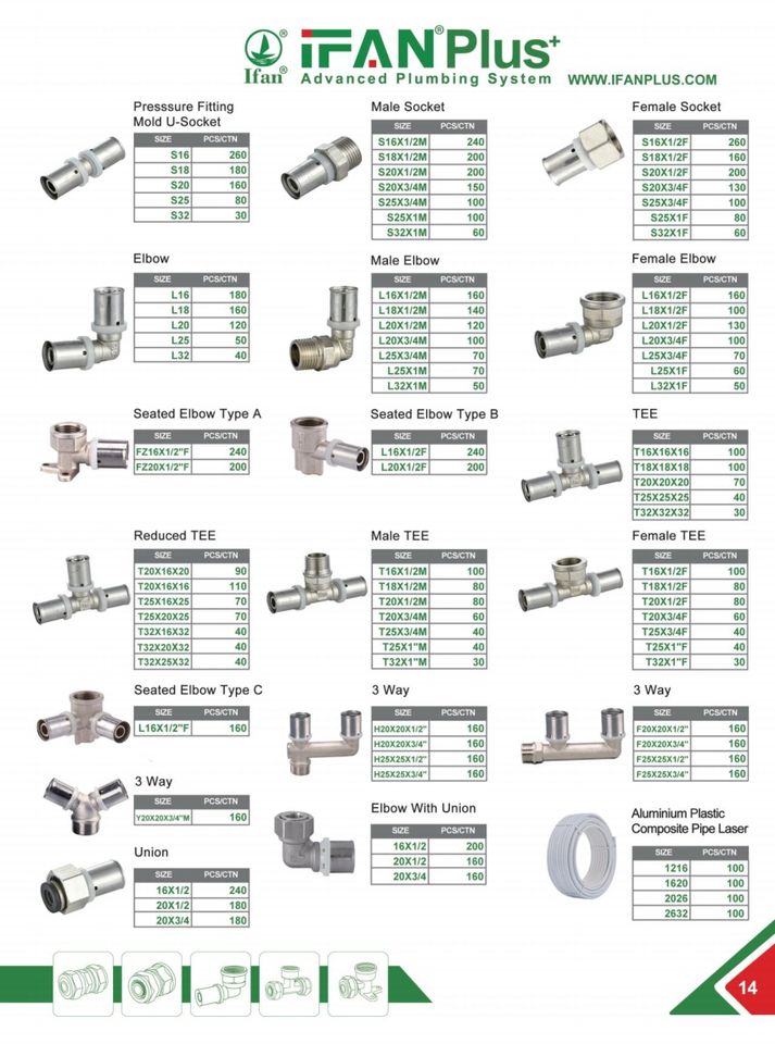 Raccords à sertir IFAN DIN 16836 type U TH pour tuyaux PEX multicouche 16MM-32MM, raccords en laiton pour tuyaux PEX