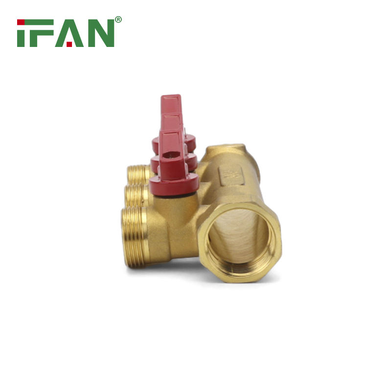 IFAN Trustable poignée rouge filetage laiton collecteur 3 voies haute pression raccord PEX 3/4 ''-1'' couleur jaune vanne en laiton
