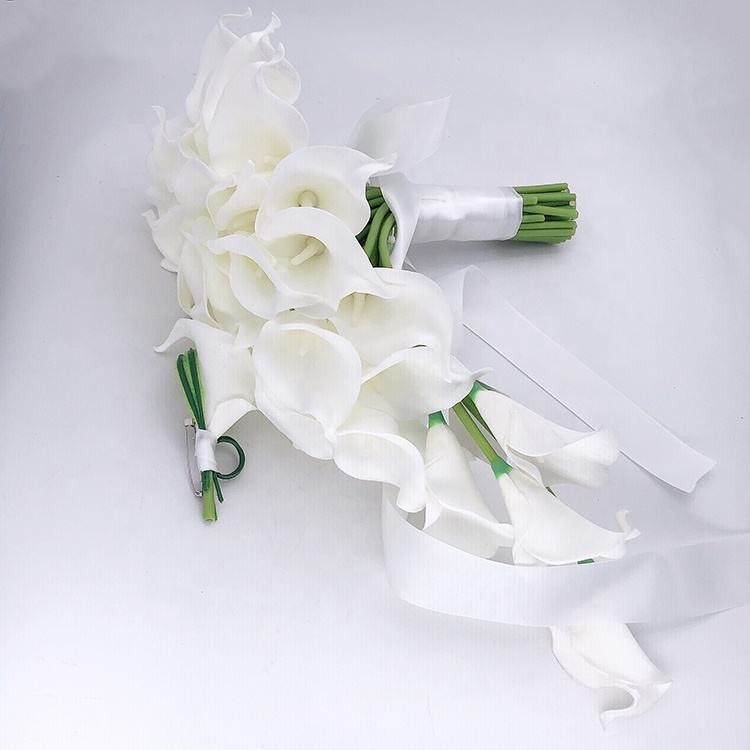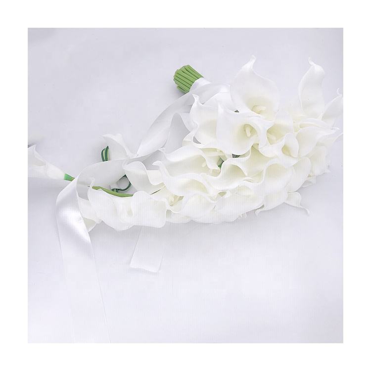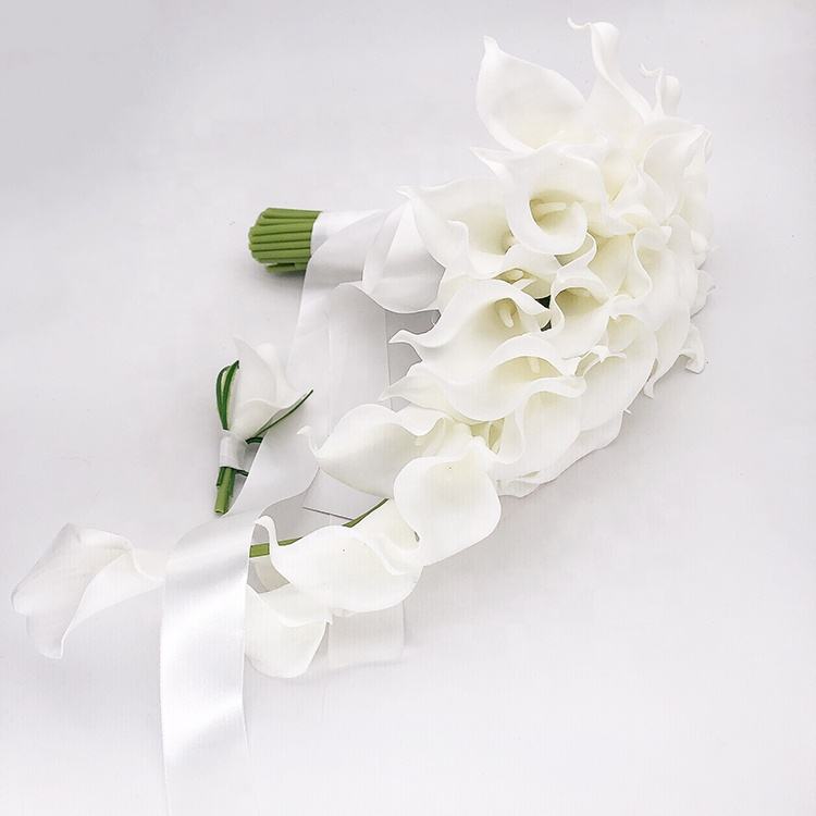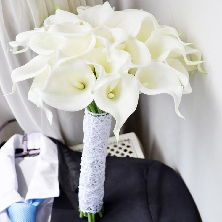 Nom:Toucher réel PU blanc calla lys fleurs artificielles bouquet de mariage