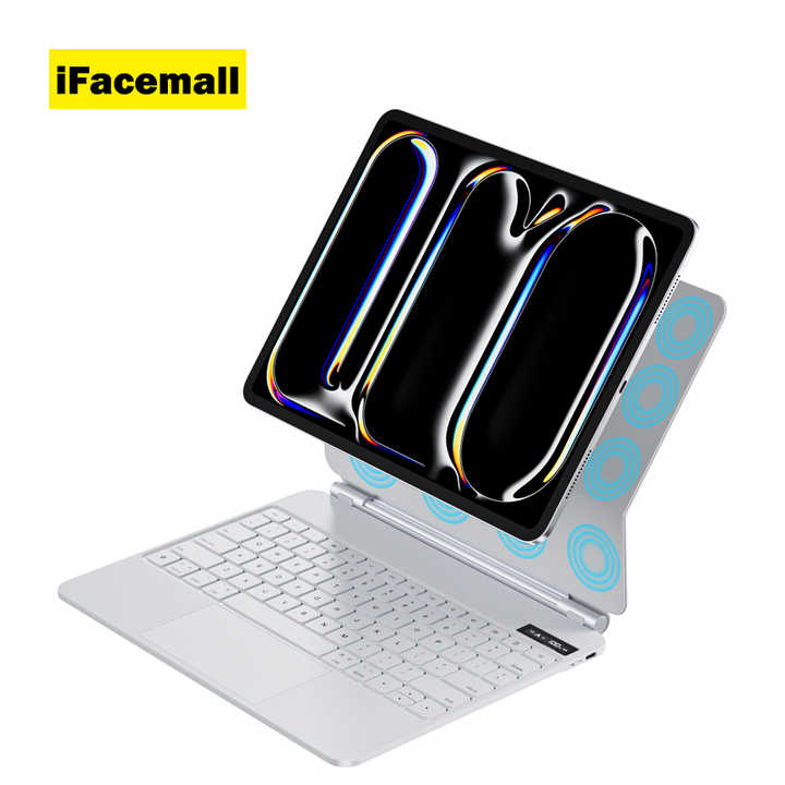 iFacemall Clavier intelligent sans fil arabe avec trackpad magnétique pour iPad Air 6e génération, logo et couleur personnalisables