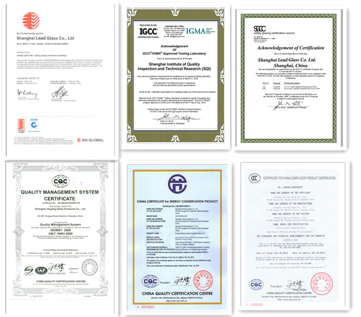 Certificat:AS/NZS2208, EN12150 et 12600, IGCC