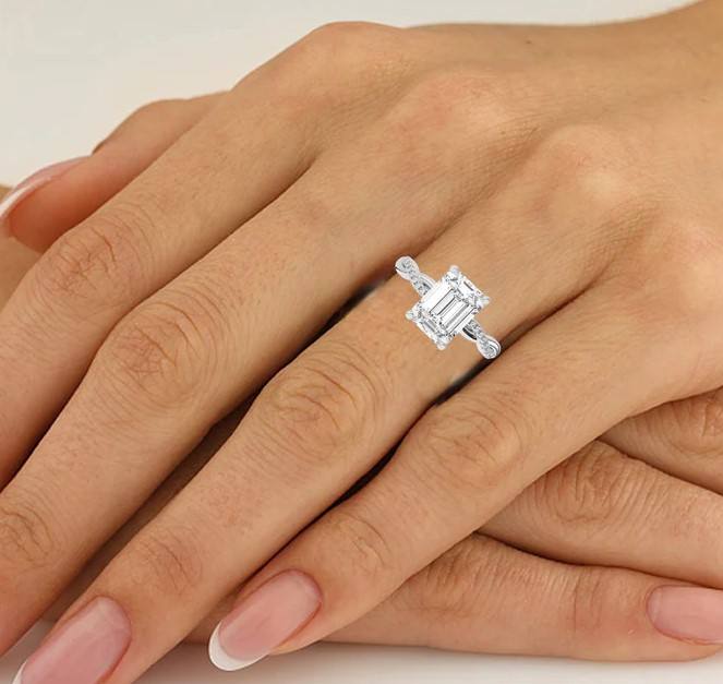 Product Name:4 Carat Emerald Cut Lab Grown Diamond Solitaire Accent Wedding Ring