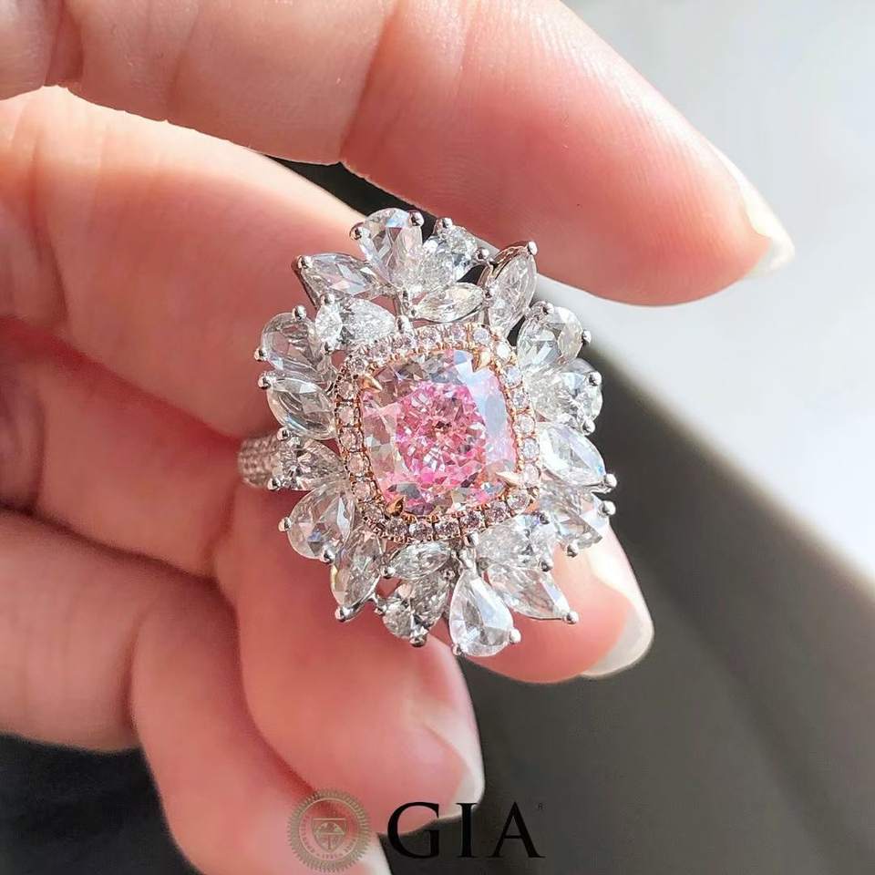 IGI Certified 18kt White Gold Brilliant Cut Laboratory-Grown Diamond Elegant Wedding Band Fashion Pink Ring for Women