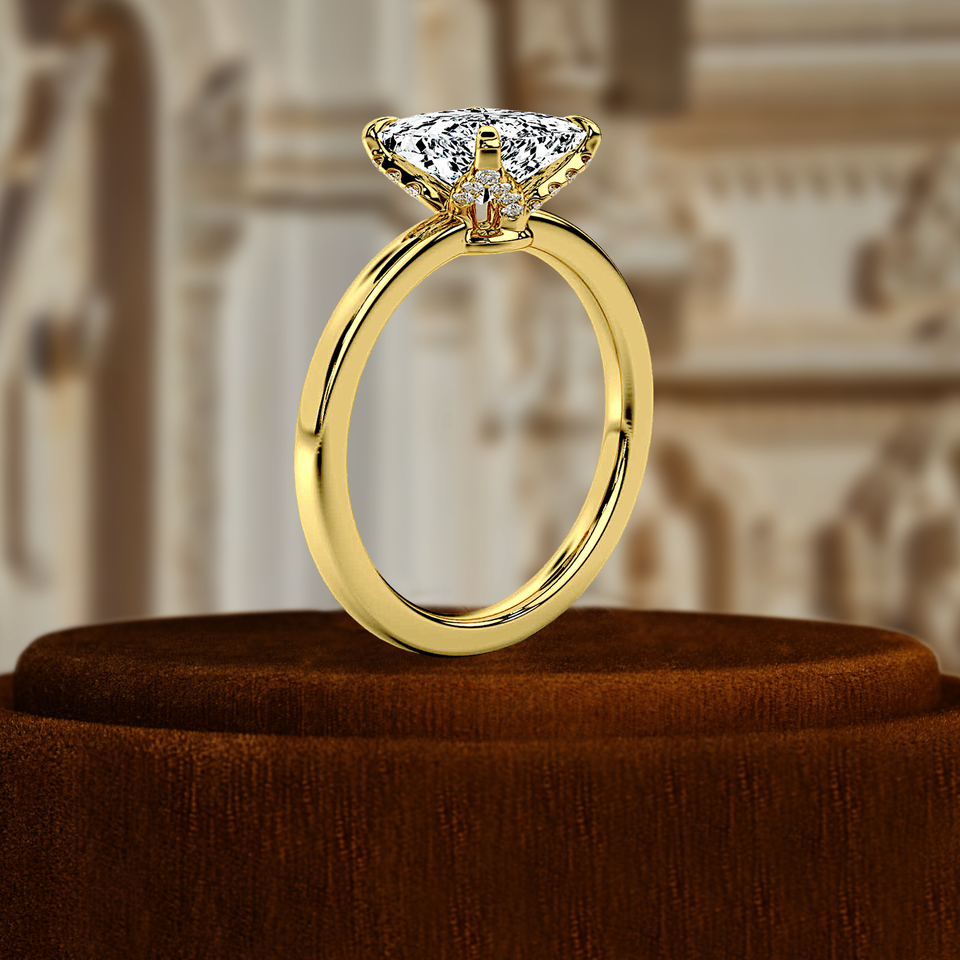 Bague de fiançailles solitaire demi-pavé en or jaune 14 carats avec diamant de laboratoire taille princesse 1 carat certifié IGI – Idéale pour cadeau, fête ou mariage