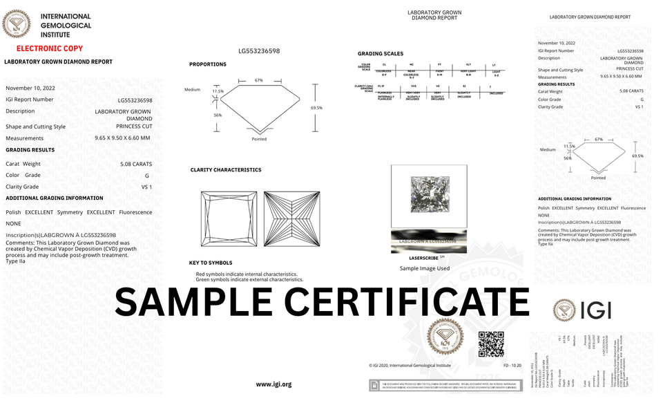 Pendentif Bague de Fiançailles en Diamant Synthétique Certifié IGI 1 Carat Taille Princesse D VS1, Pierre Premium JC Percée au Laser