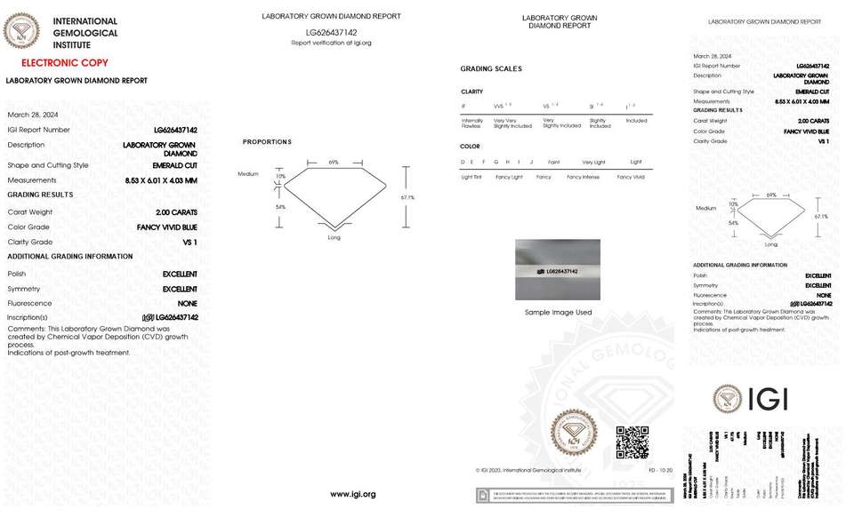 IGI certifié fantaisie couleur bleu vif VS1 clarté 2.0 Ct poli laboratoire cultivé diamants CVD en vrac taille émeraude pour l'utilisation de la fabrication de bijoux