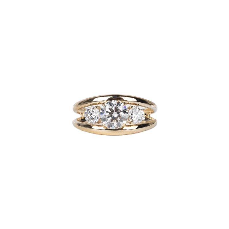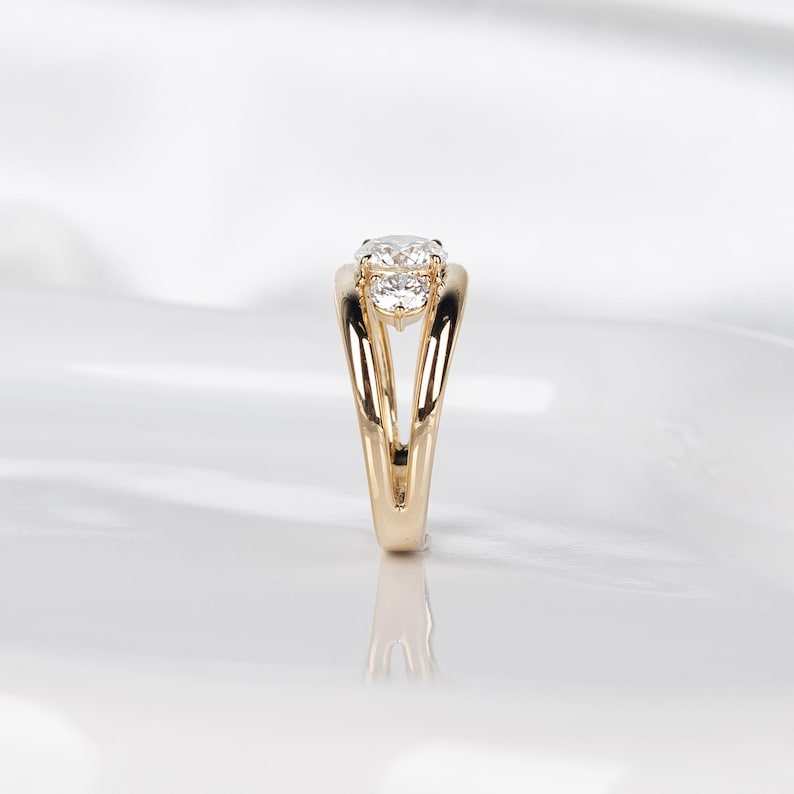 Bague à trois pierres en diamant rond cultivé en laboratoire certifié IGI pour femme, or massif 14 carats, double alliance, cadeau surprise pour mariage