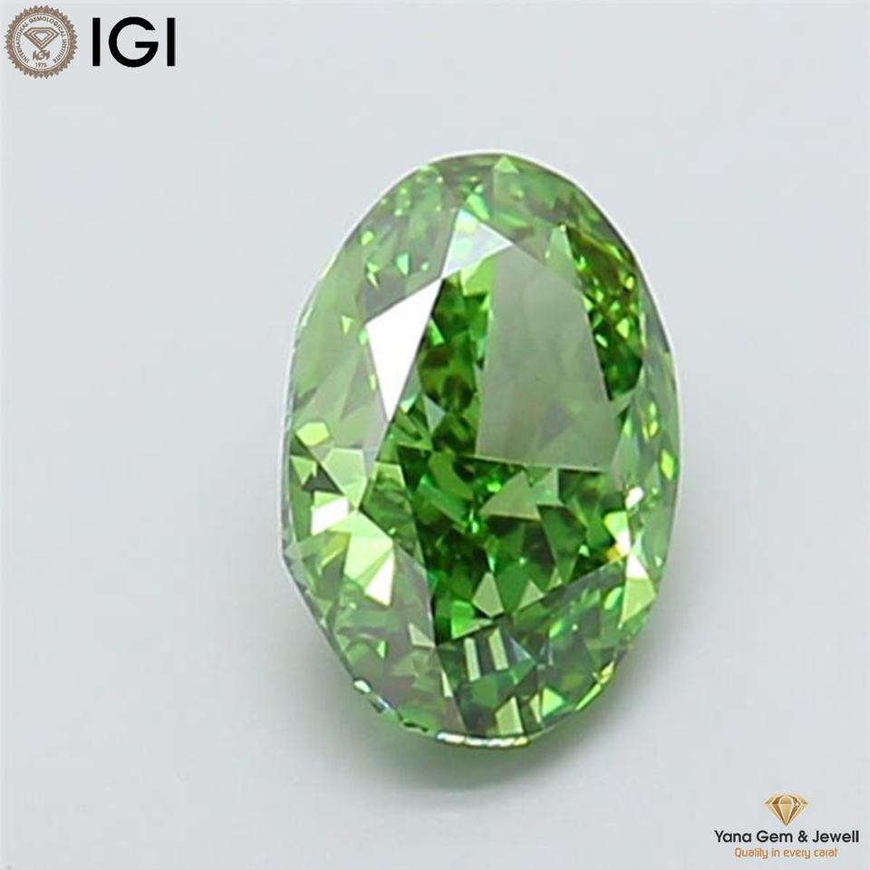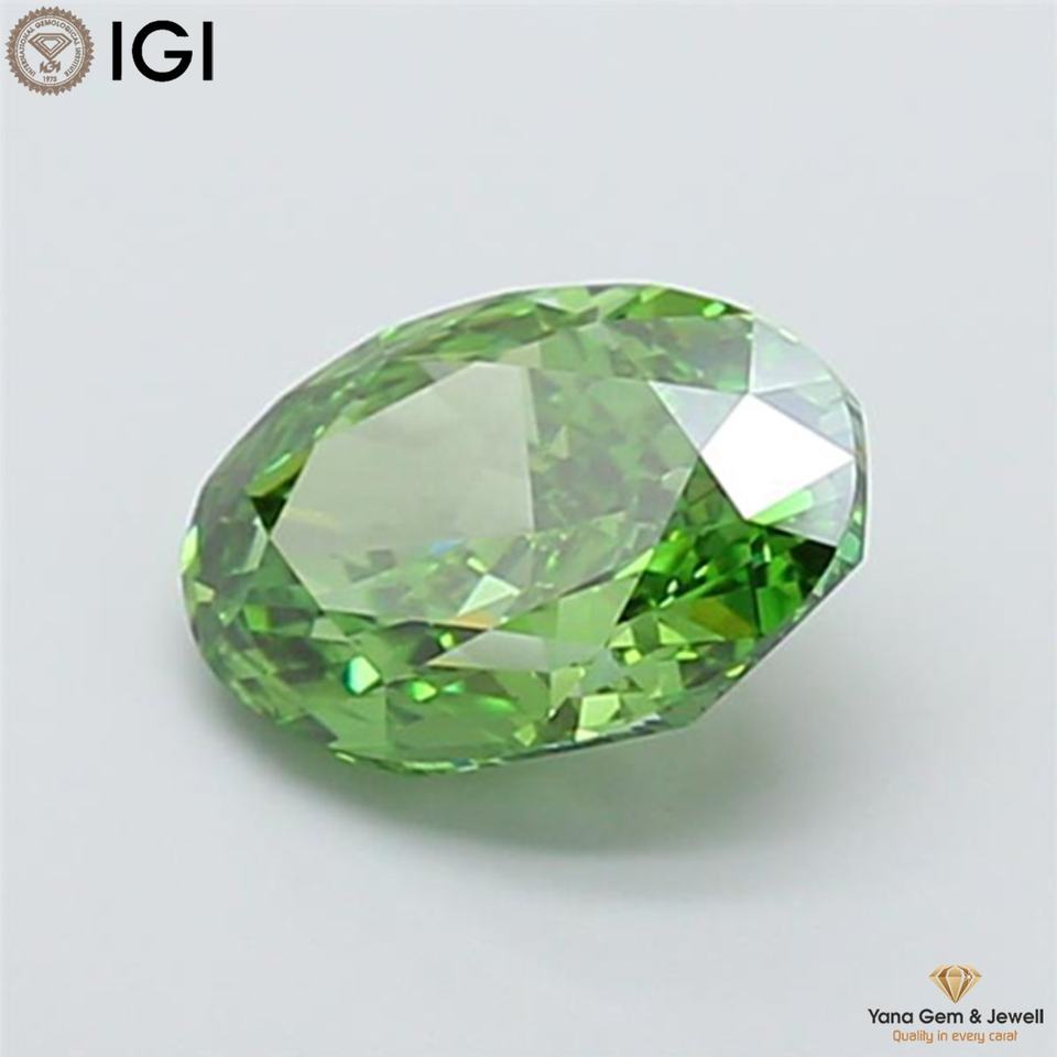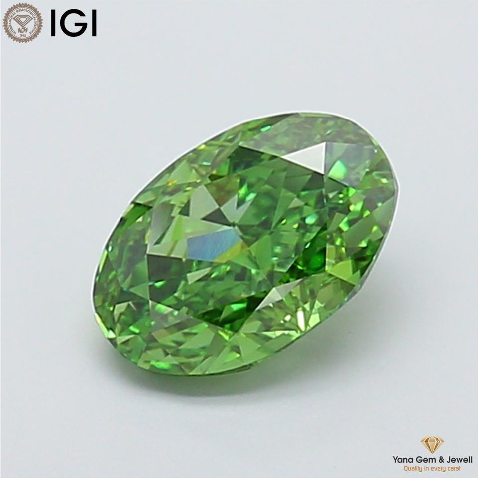 Diamant de laboratoire cultivé CVD de forme ovale certifié IGI, 4,00 carats, couleur vert vif fantaisie, clarté VS1, pour centre de bijouterie de luxe