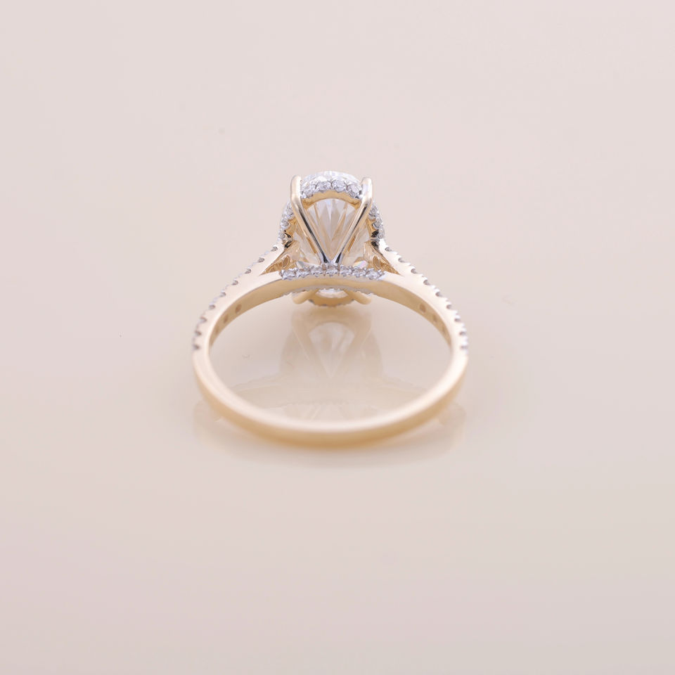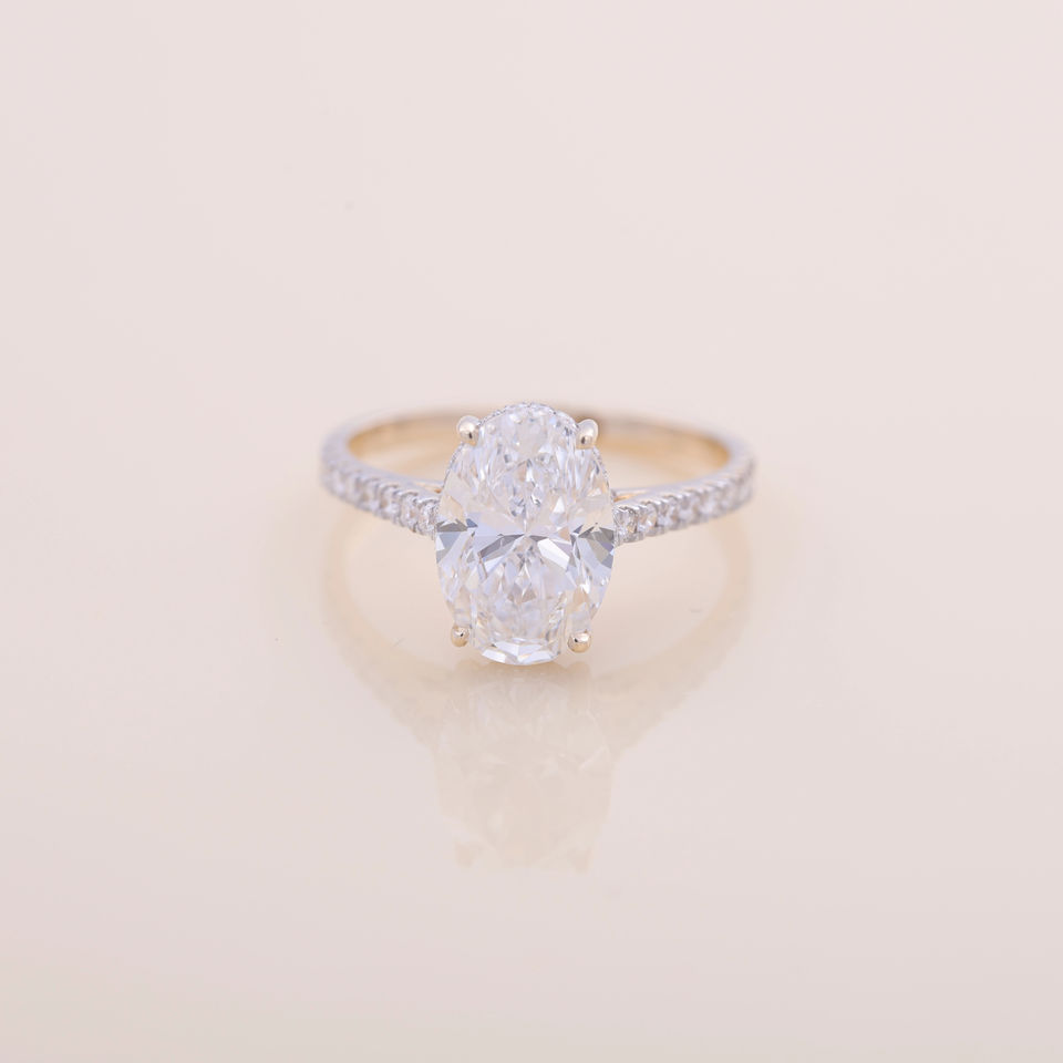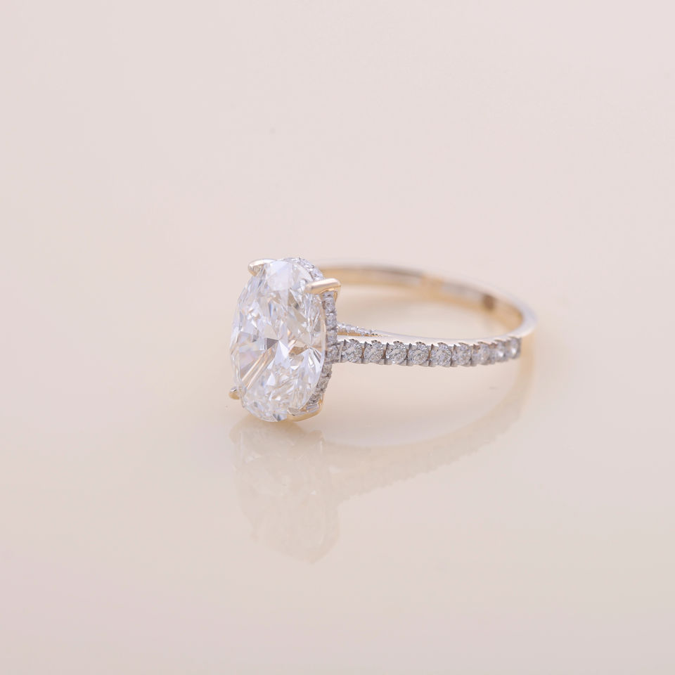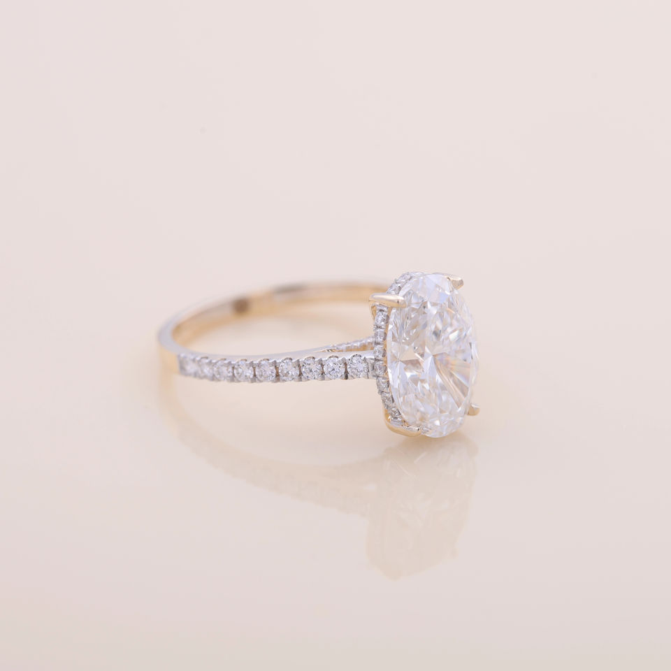 Bague de fiançailles/mariage solitaire en diamant de laboratoire de taille ovale certifié IGI, en or jaune/blanc/rose 18 carats avec bande pavée