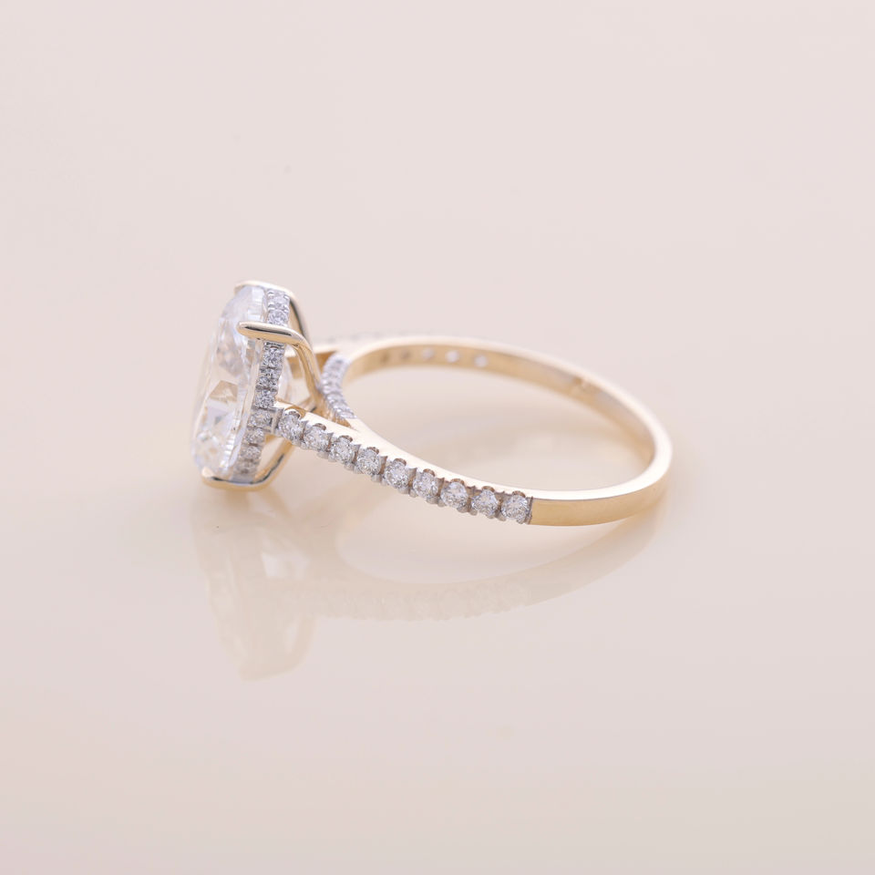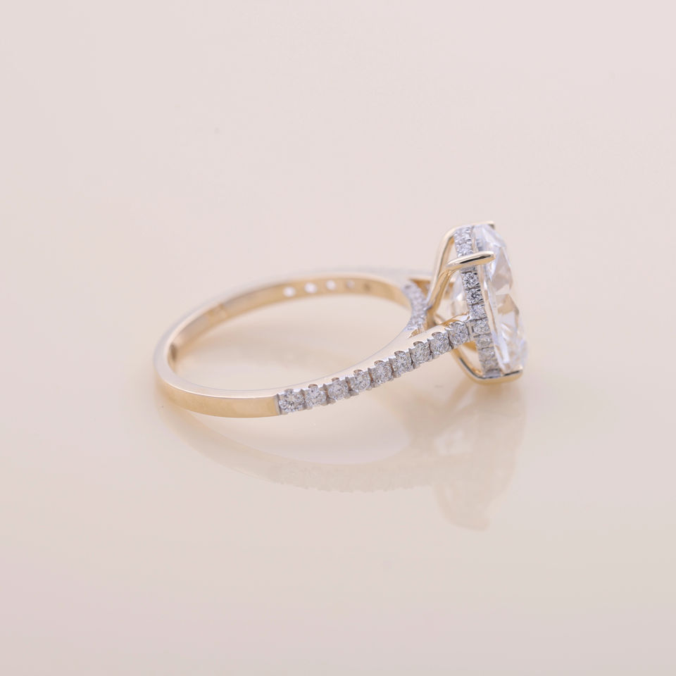 Bague de fiançailles et de mariage pavée de diamants de laboratoire ovales