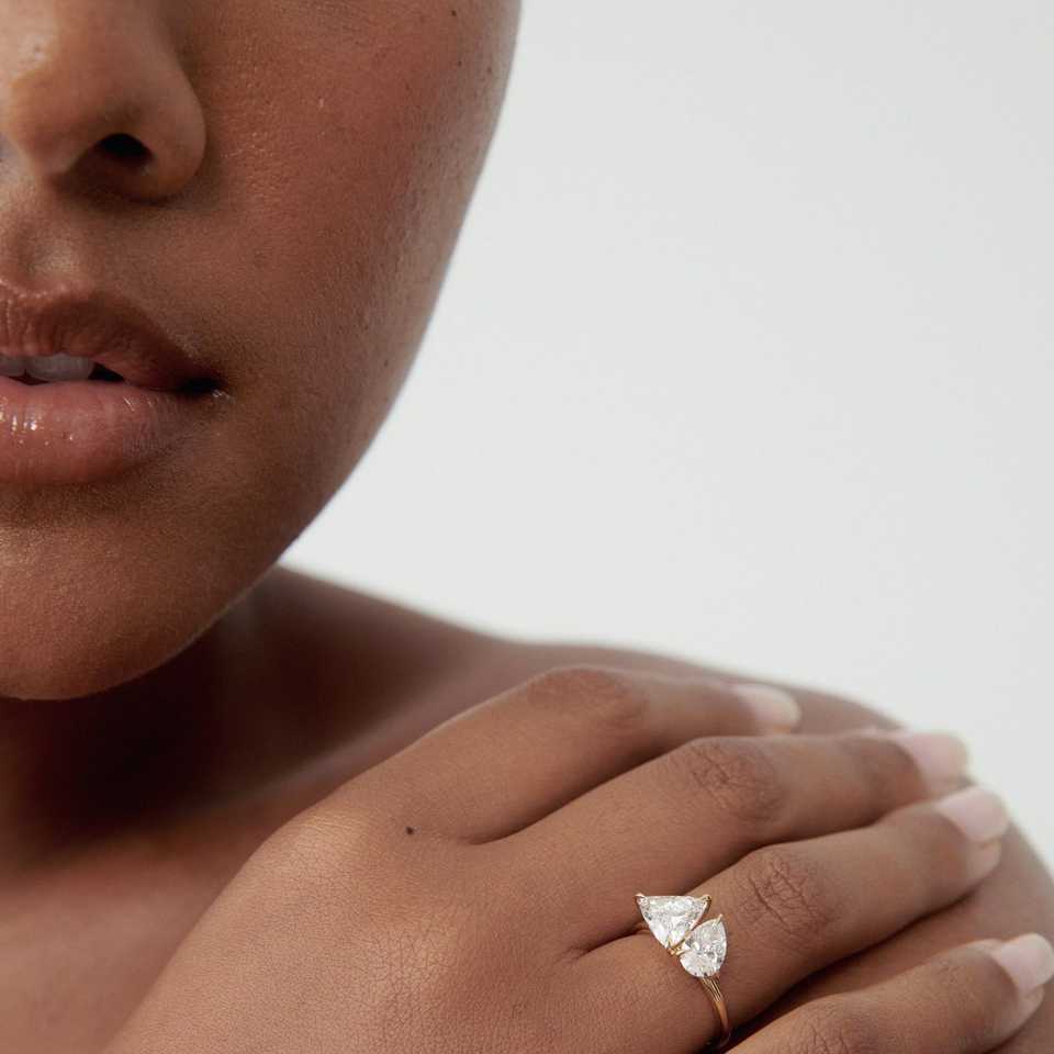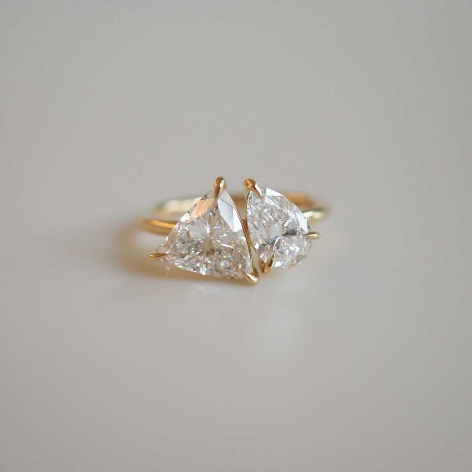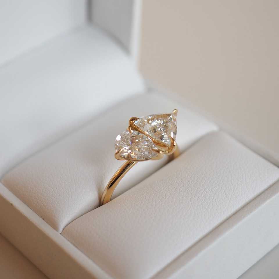 IGI Certified Two Stone Lab Grown Diamond Engagement Ring 2.70 Ctw Pear Trillion Cut Toi Et Moi Bezel Setting Wedding Ring