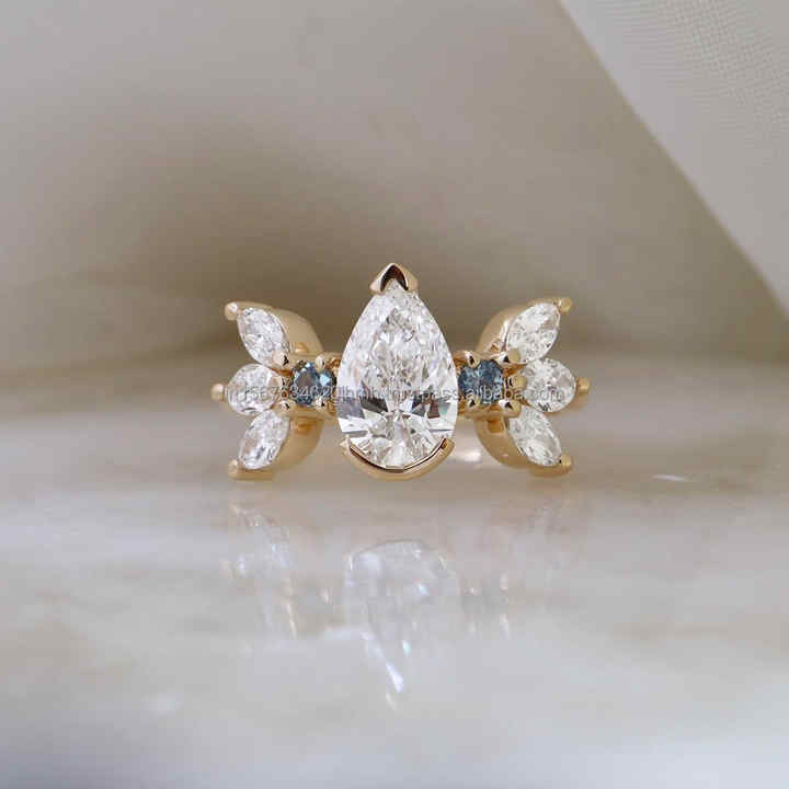 Bague de mariage/fiançailles unisexe en or jaune 14 carats, taille poire, style vintage, certifiée IGI, or blanc fin, idéale pour un anniversaire, faite à la main